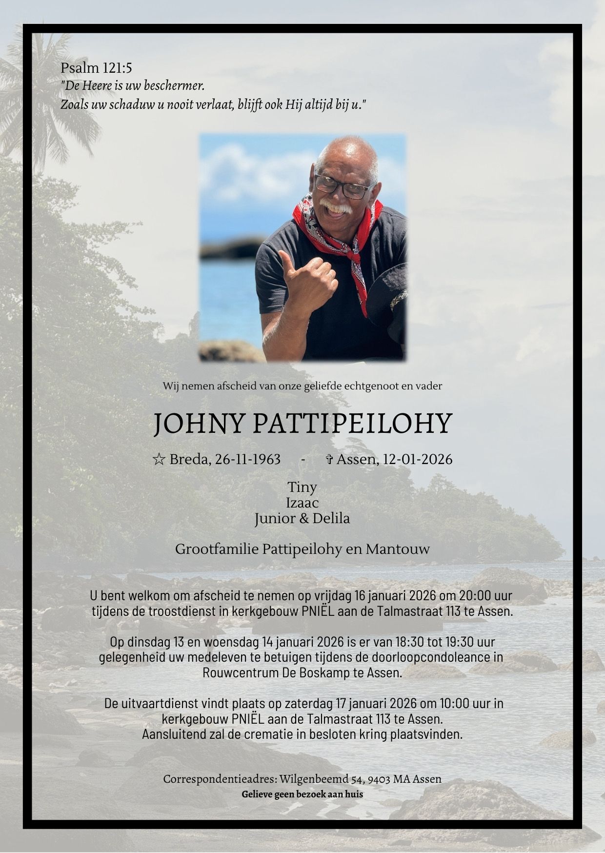 Namens de grootfamilie Pattipeilohy en Mantouw uit Assen hebben wij het verzoek ontvangen om onderstaand bericht met u te delen.